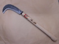 木鎌 厚刃。 六寸刃。 本職用。 両刃。 刃部 安来鋼白紙。刃渡り 165ミリ。柄の長さ 360ミリ。 さびます。 230g。